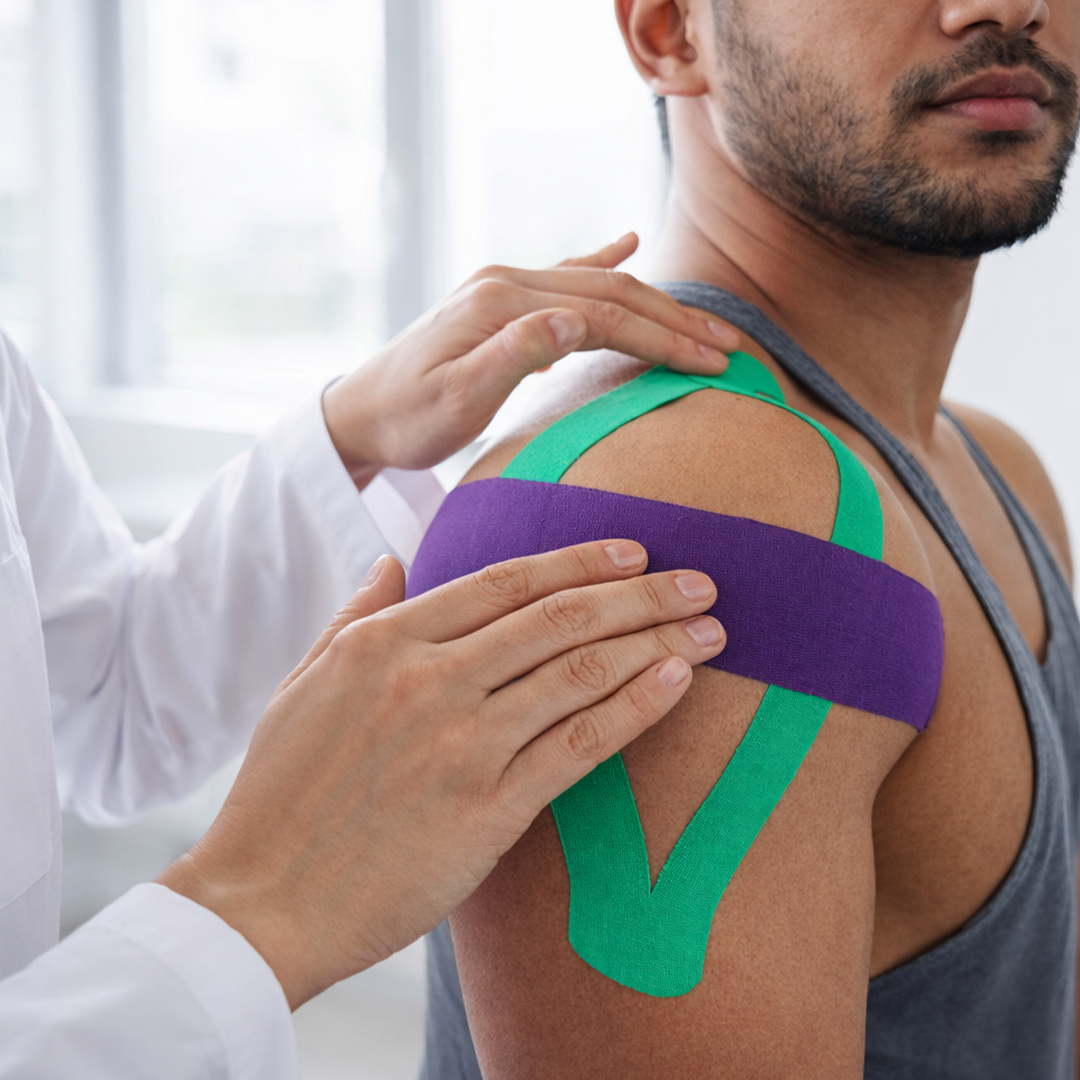 Elastic therapeutic taping that supports muscles, improves movement, and reduces strain.